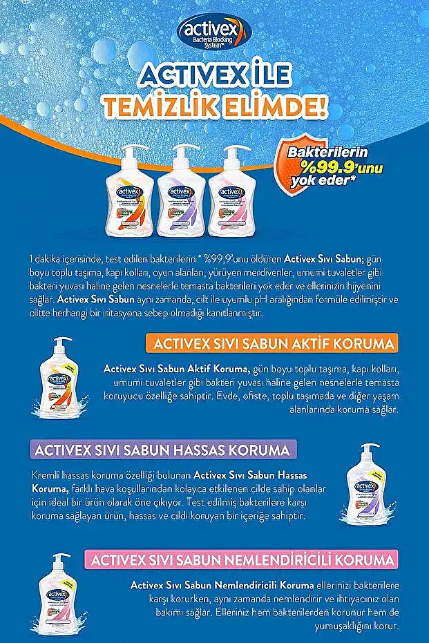 Hijyenden ödün vermeyenler ve ev ekonomisini düşünenler için mükemmel çözüm! Activex Aktif Koruma Sıvı Sabun, 1500 ml’lik avantajlı yedek paketiyle hem doğayı koruyor hem de cüzdanınızı gülümsetiyor. Bakterilerin %99.9'unu yok eden 7 etkili koruma sistemi sayesinde, ailenizin sağlığını dev boy bir paketle güvence altına alın.