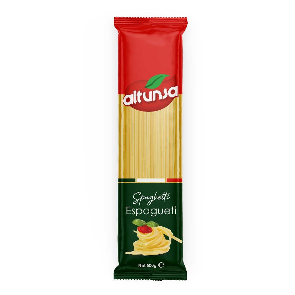 Altunsa Spaghetti (Espagueti) 500 G, kaliteli durum buğdayından üretilmiş, ideal kalınlıkta ve diri yapısıyla mükemmel kıvam sunan bir makarnadır. Klasik İtalyan tariflerinden günlük pratik öğünlere kadar her tarifte lezzet garantisi sağlar.