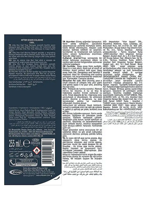 Arko Men Cool Tıraş Kolonyası 255 ml: Tıraş Sonrası Buz Gibi Bir Tazelik!