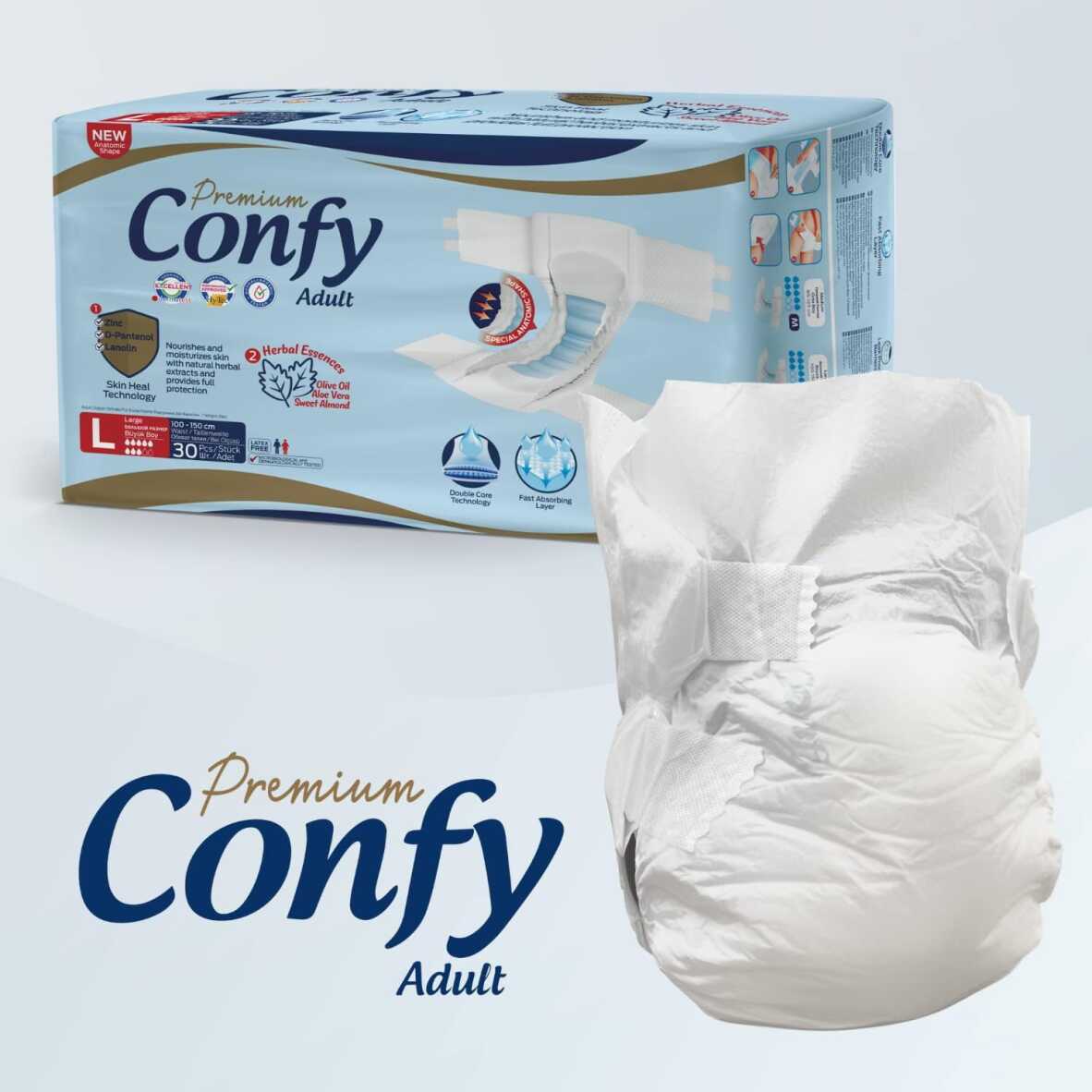 Confy Belbantlı Yetişkin Hasta Bezi , yoğun idrar kaçırma rahatsızlığı yaşayan kişilerin kendilerini güvende hissetmeleri için hazırlanmıştır.