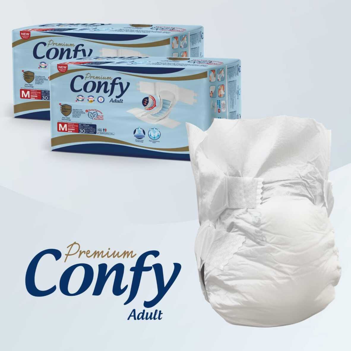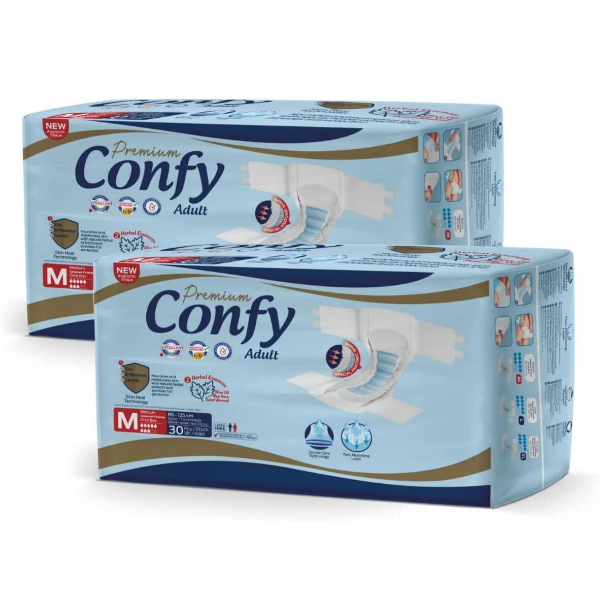 Confy Adult Yetişkin Bezi Medium boyutu, hareket kabiliyeti kısıtlı yetişkinler için özel olarak tasarlanmış, yüksek emici özelliklere sahip bir üründür. 30 adetlik 2 paket halinde sunulan bu bezler, hem ekonomik hem de uzun süreli kullanım için pratik bir çözüm sunar. Günlük yaşamda ve hasta bakımında kullanıcıların konforunu ve hijyenini ön planda tutar.
