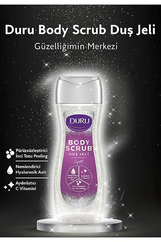 Nasıl Uygulanır ve En İyi Sonuç Nasıl Alınır?Duş esnasında vücudunuzu ılık suyla ıslatarak cildinizi bakıma hazırlayın. Yeterli miktarda Duru Body Scrub Crystal duş jelini banyo lifinize veya doğrudan avucunuza alın. Özellikle diz, dirsek ve topuk gibi sertleşmeye meyilli bölgelerden başlayarak tüm vücudunuza dairesel, nazik hareketlerle masaj yapın. Kristal taneciklerin cildinizi nasıl parlattığını ve canlandırdığını hissedin. O ferah kokuyu içinize çektikten sonra bol su ile durulayın. Uygulama sonrası cildinizin nefes aldığını ve ipeksi bir dokuya kavuştuğunu anında göreceksiniz.