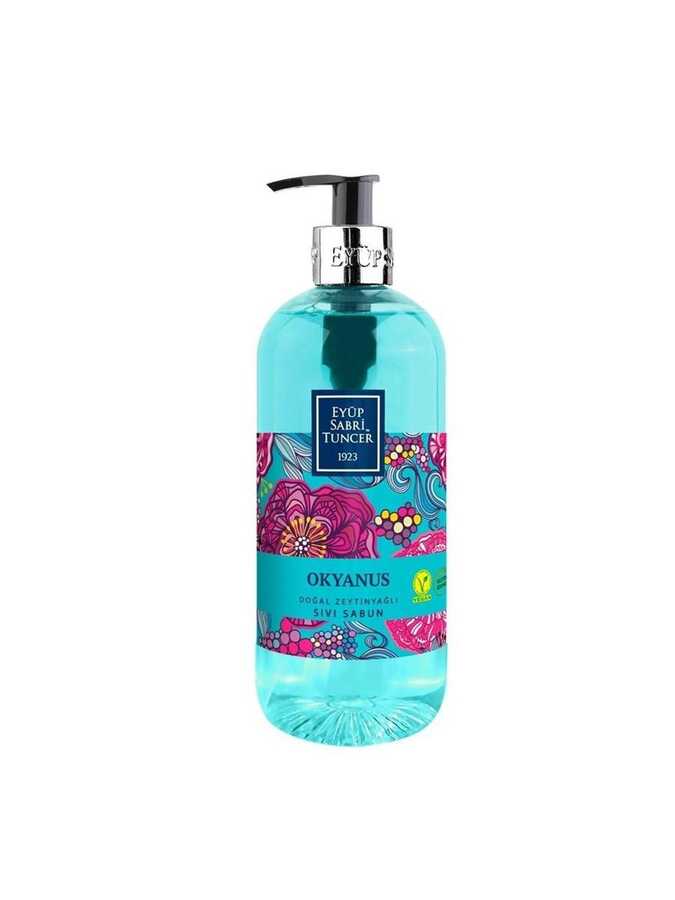 %100 doğal zeytinyağı içeren Eyüp Sabri Tuncer Okyanus Doğal zeytinyağlı sıvı sabun, kusursuz bir güzellik için başta el ve yüz olmak üzere vücudun günlük temizliğinde kullanılır.