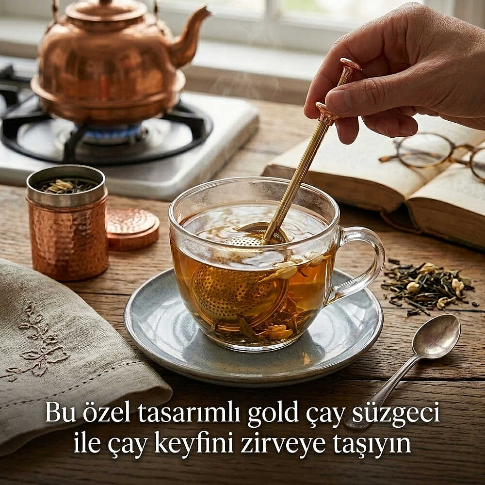 Gold Renkli Paslanmaz Çelik Pratik Çay Süzgeci