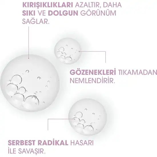 Düşük - orta ve yüksek molekül ağırlıklarına sahip Hyaluronik Asit formlarını bir arada içeren bu serum, cildi derinlemesine nemlendirir; çizgi ve kırışıkların görünümünü azaltır, cilt elastikiyetini artırarak daha sıkı ve dolgun bir görünüm sağlar.