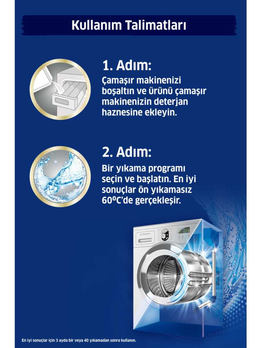 En iyi sonuçlar için 3 ayda bir veya 40 yıkamada bir kullanın.