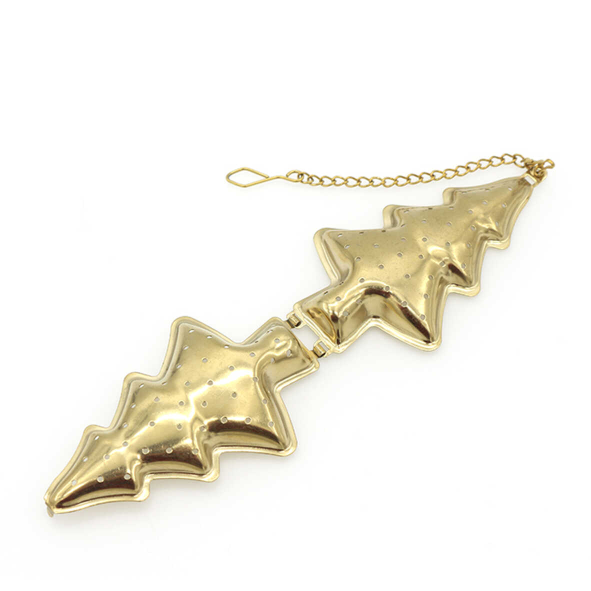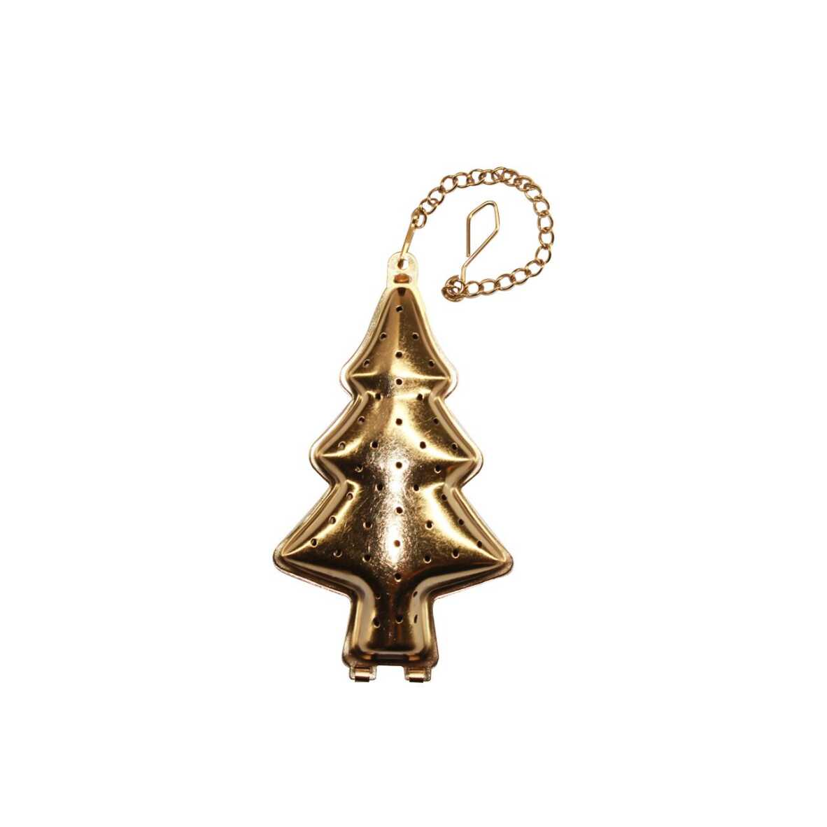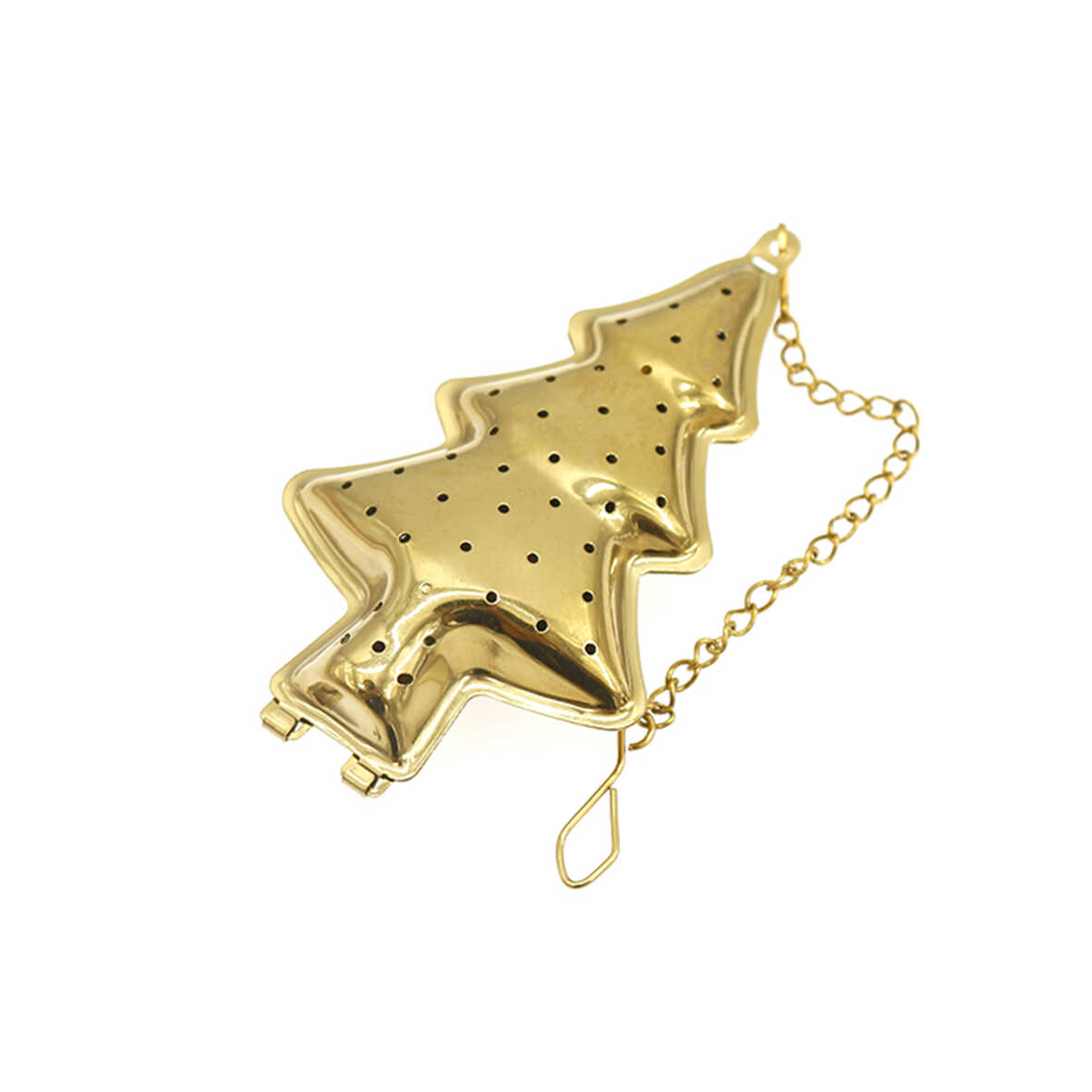 Yılbaşı Ağacı Tasarımlı Gold Paslanmaz Çelik Çay Süzgeci